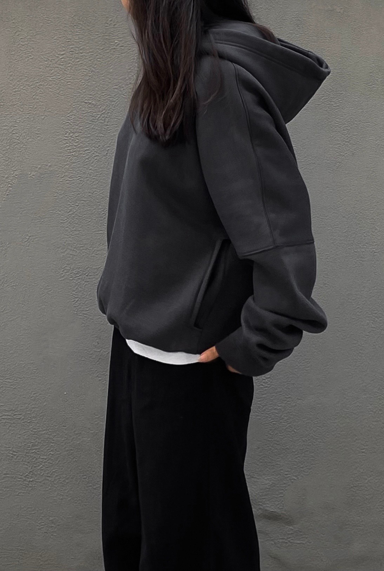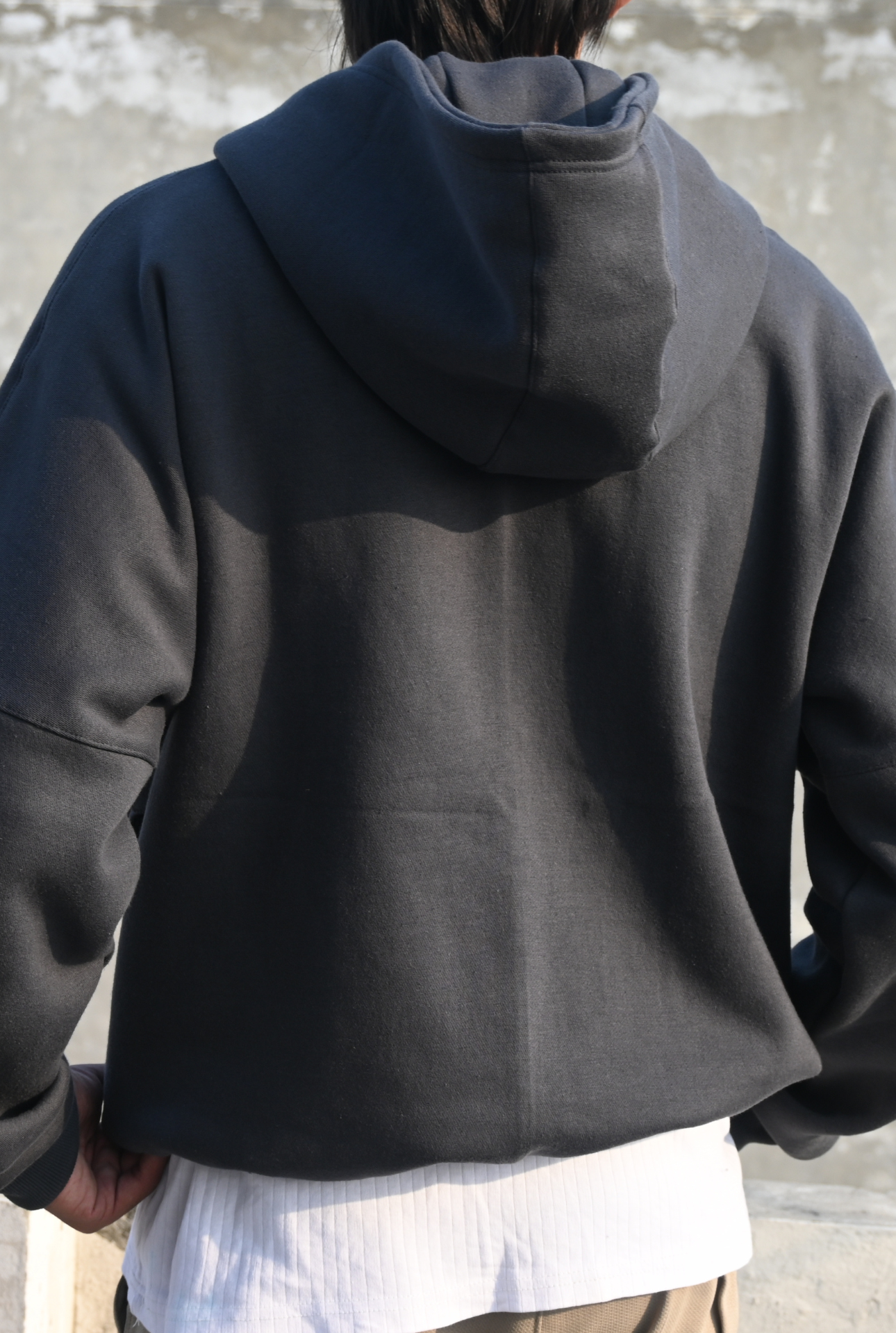 A heavyweight oversized unisex hoodie in “Metal” gray, crafted from 100% cotton fleece for structure, warmth, and everyday wear. Designed with a cropped boxy silhouette, clean minimal detailing, and subtle accents for a refined street-ready look.